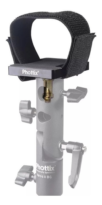 Para su uso se recomienda una rótula, con anclaje por espiga o rosca macho de 1/4″ como la línea Varos de Phottix