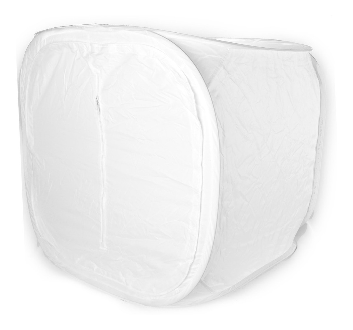 La carpa está construida en una tela de nylon especial para fotografía que difumina la luz externa, suavizando las sombras, reduciendo reflejos.