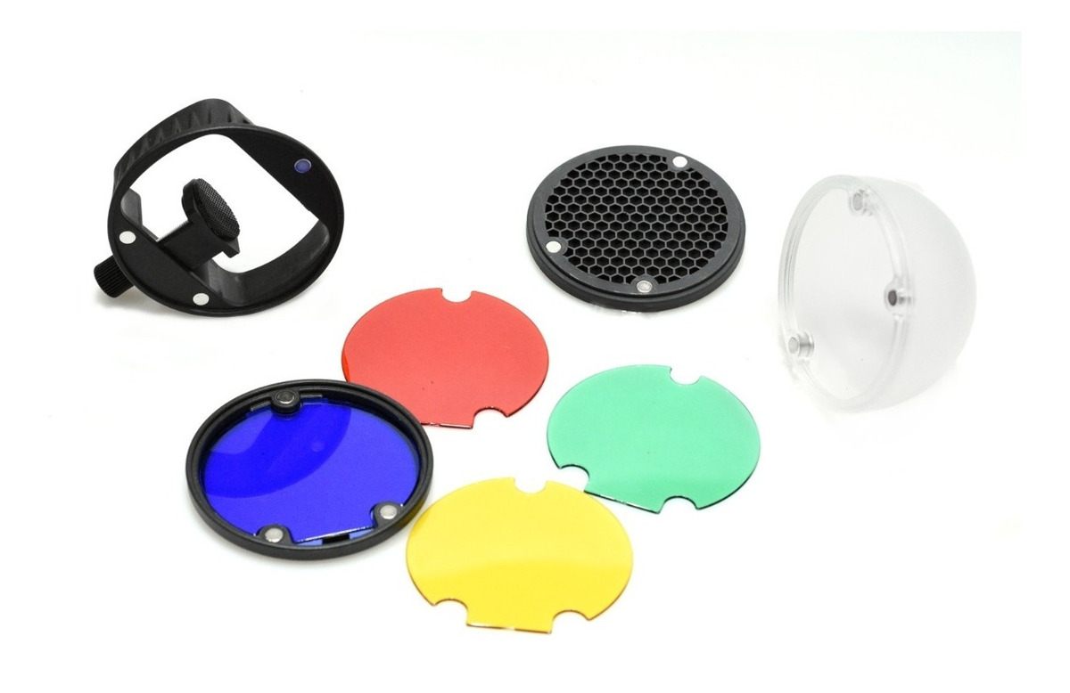 Permite utilizar cada accesorio por separado o en conjunto. Logrando efectos de difusión, dirección o modificar el color de la luz de su flash de zapata.