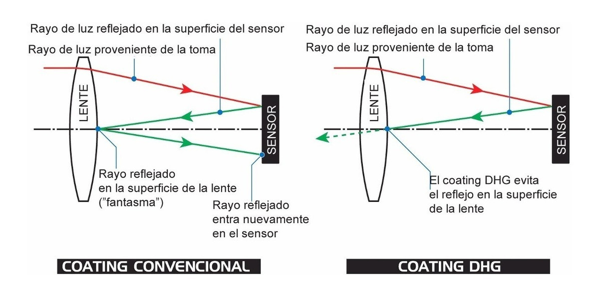 Los sensores CCD y CMOS de las cámaras digitales convierten la luz en señales eléctricas y parte es reflejada por la superficie de los mismos. Este reflejo interno produce fenómenos como flare, sombras indeseadas y fantasmas que reducen la calidad de la toma. Los filtros DHG están especialmente diseñados para minimizar estos fenómenos y maximizar la performance de su lente.