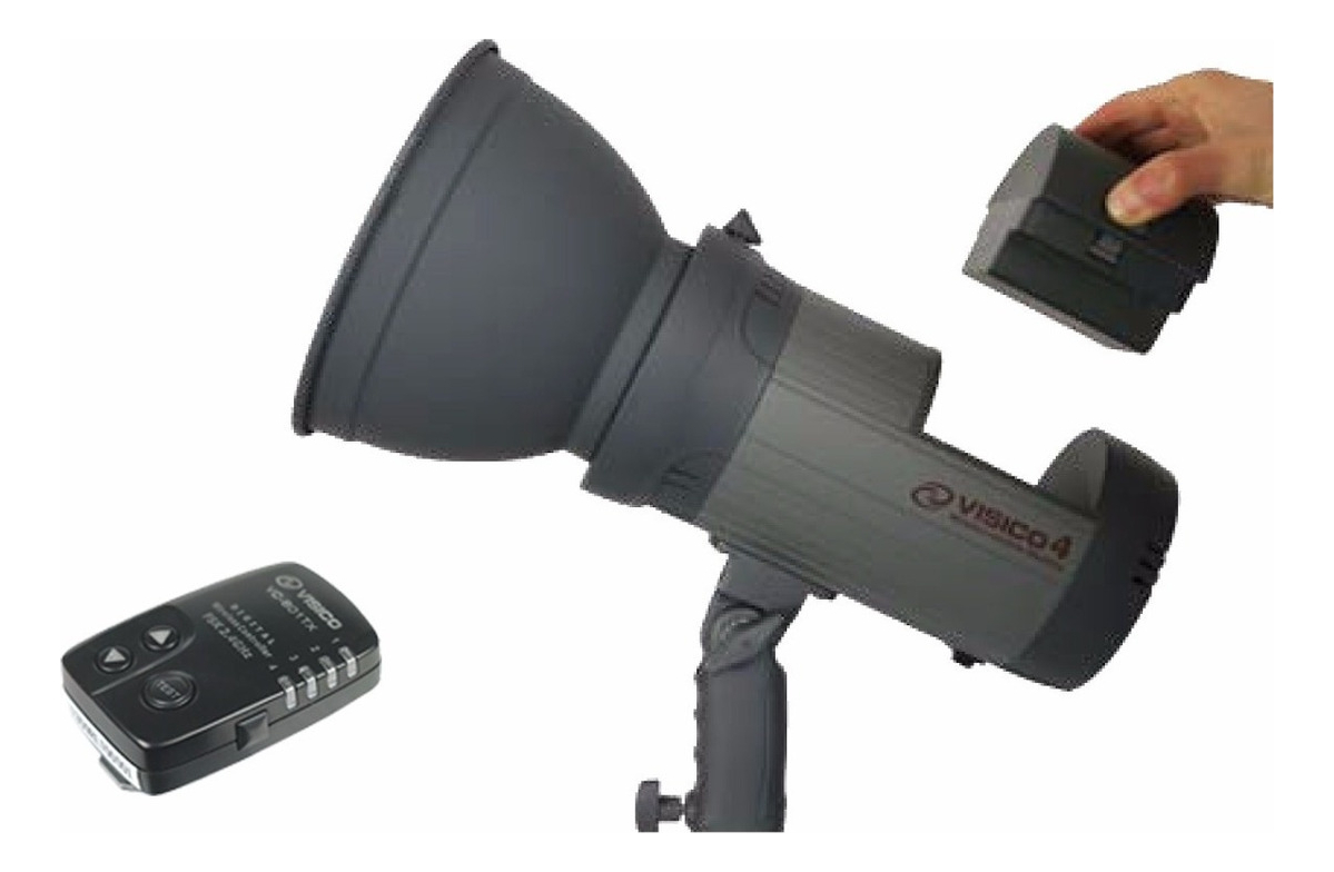 • Método de activación: Fotocélula / cable de sincronización (apto radiodisparador externo) receptor de radio incorporado compatible con emisores Visico / botón de prueba.