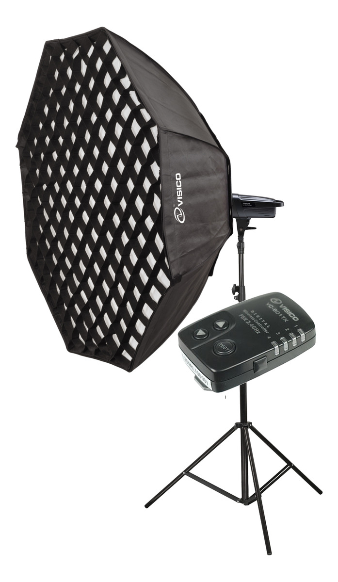 Kit Flash de Estudio Visico 300w Plus II + Columna + Softbox Octogonal 150cm con GRID + Emisor Visico VC-801TX