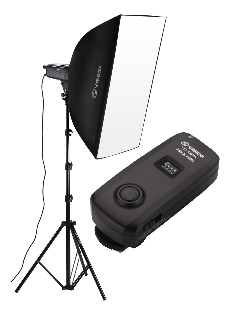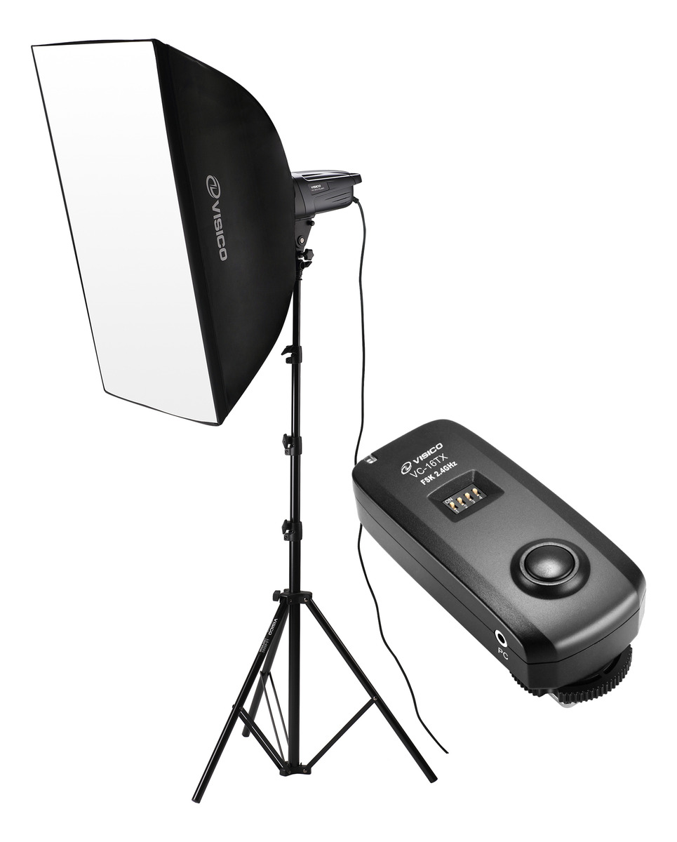 Kit Flash de Estudio Visico 300w Plus II + Columna de iluminación 247cm + Softbox 50x70cm + Emisor Visico VC-16TX