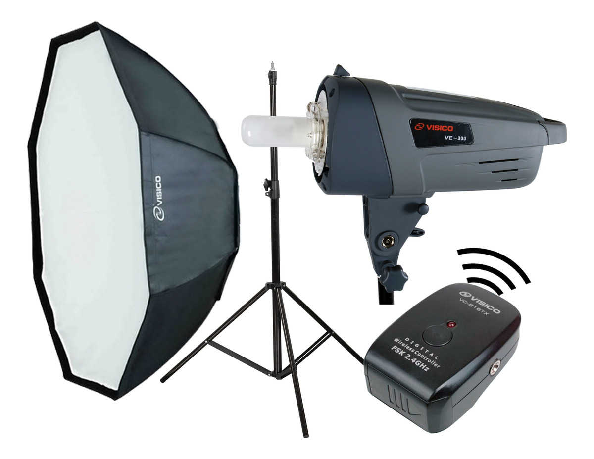 Kit Flash de Estudio Visico 300w Plus + Columna + Softbox Octogonal 120cm + Emisor Visico VC-816TX