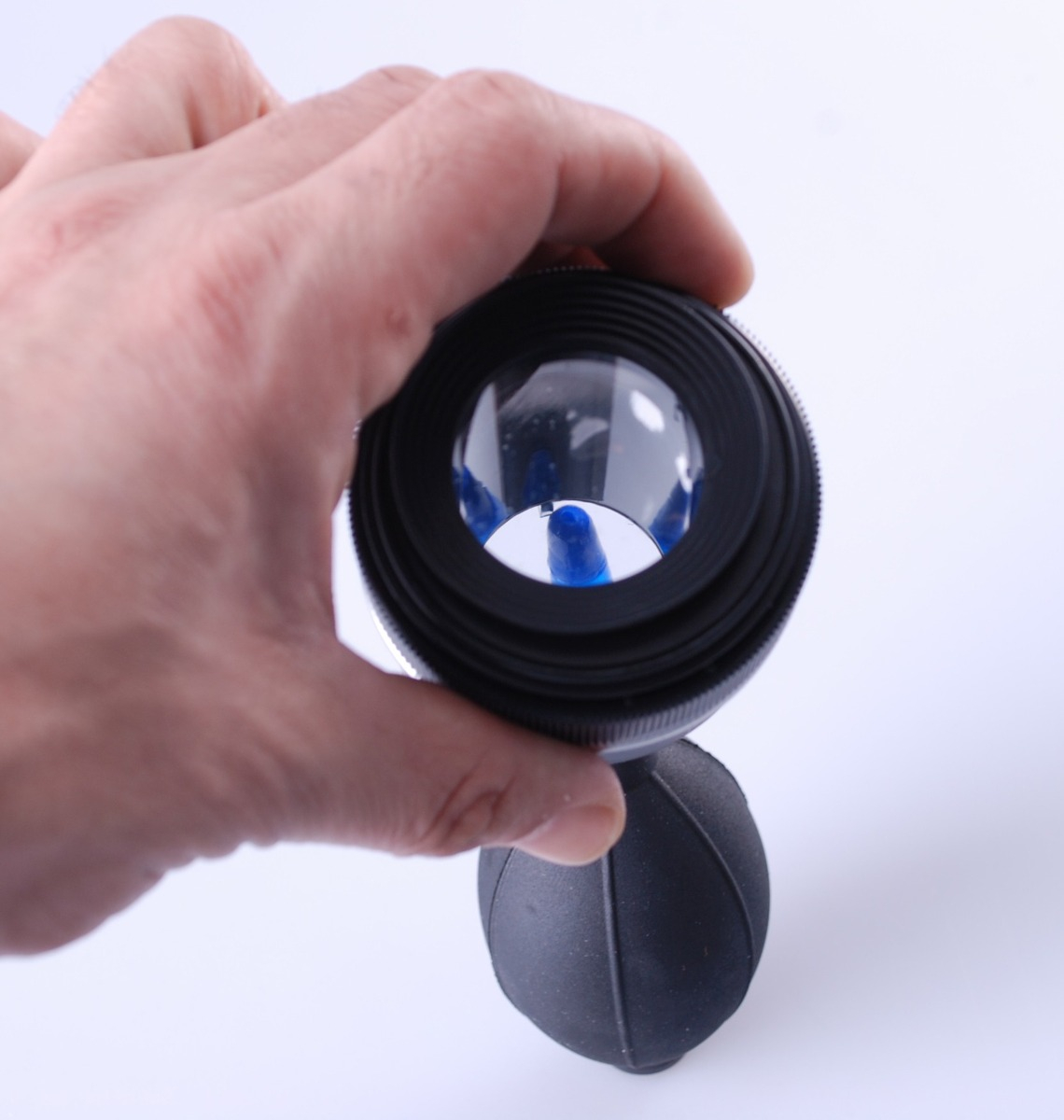 Una pera sopladora para remover partículas de polvo sueltas.