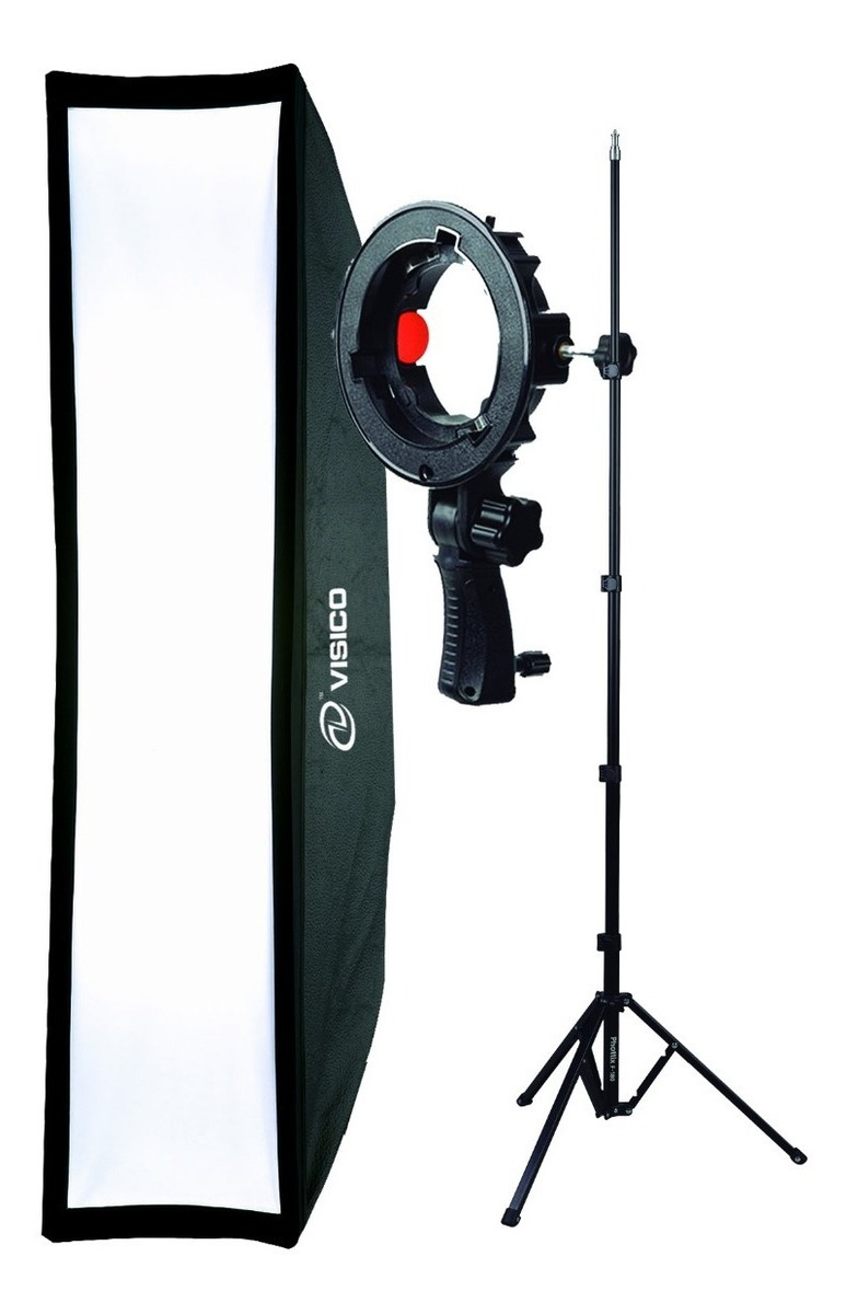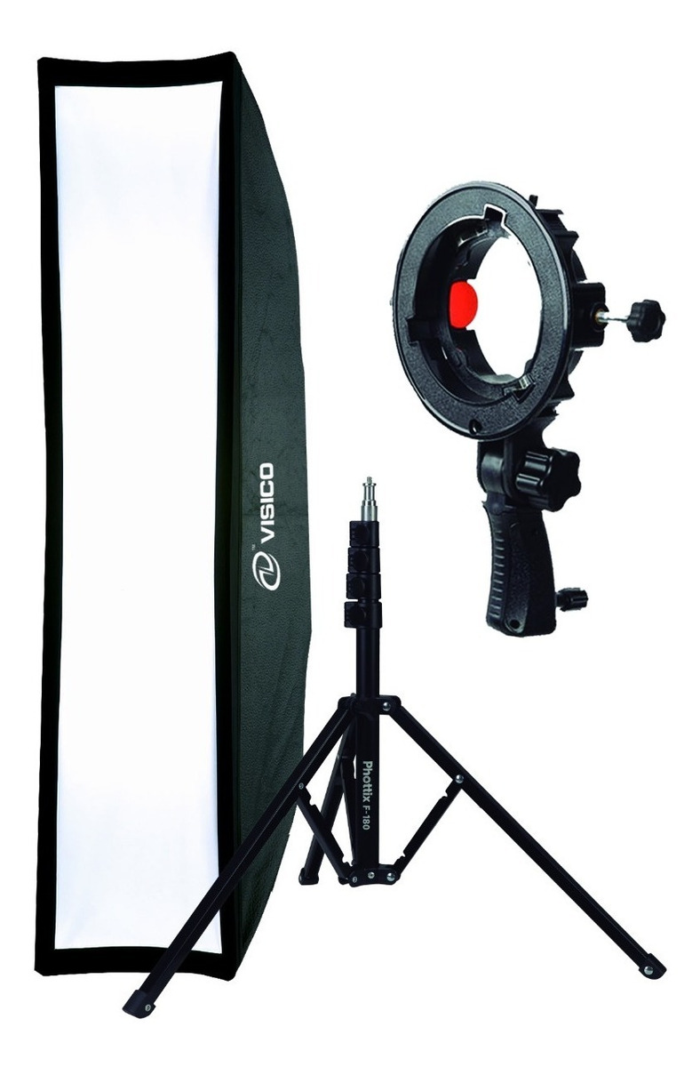 “Kit softbox strip 20X90cm con adaptador para flash de zapata y columna de iluminación
