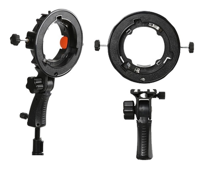 • Encastre para flash de estudio Bowens, Visico o similar giratorio 360º para logra luz en forma vertical u horizontal
