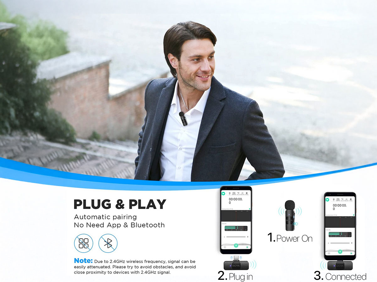 El BOYA BY-V10 es un micrófono inalámbrico digital 2.4GHz diseñado para grabaciones individuales desde el celular. Es la opción ideal para creadores que trabajan solos y buscan mejorar el audio sin complicaciones. A diferencia del BY-V20, este modelo utiliza un solo transmisor, ofreciendo una solución más compacta y directa.