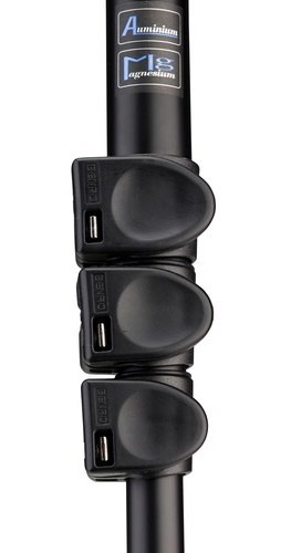 Con palanca de liberación rápida de la platina tipo Arca Swiss, con anclaje a la cámara por rosca macho de 1/4″.