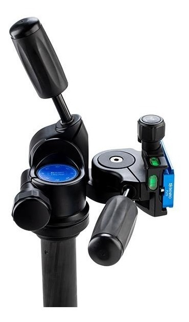 Posee 2 manijas para nivelar el equipo respecto al horizonte y tilt en forma muy suave, e independiente al paneo.